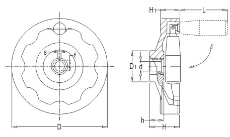 JS.101001 內波紋手輪 顏色:亮光黑 材質:酚醛樹脂(膠木) 用途:適用于各類機械裝備的操作調節 特性:光澤感強,外形美觀,手柄可折疊。耐高溫、溶劑、機油及其他化學試劑。鋼制鐵芯表面處理防銹能力強。標準化使用,安裝簡便