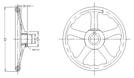JS.101011 五輻手輪 顏色:黑色 材質:增強尼龍 用途:適用于大型、重型機械的裝備,多用于汽輪機、船舶等行業 特性:經濟環保、抗摔、輕巧靈便、質感強檔次高。鋼制鐵芯表面處理防銹能力強。標準化使用,安裝簡便