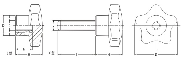JS.102007 五星把手 顏色:亮光黑 材質:酚醛樹脂(膠木) 用途:適用于各類機械裝備、五金工具、舞臺燈光設備等行業 特性:光澤感強、外形美觀、機械強度高、堅固耐用、標準化使用、安裝簡便。