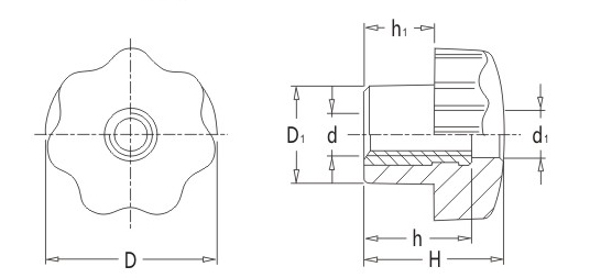 JS.102011 塑料星形把手 顏色:啞光黑 材質:增強尼龍 用途:適用于各類機械裝備、五金工具、舞臺燈光設備等行業 特性:啞光飾面、外形美觀、機械強度高、堅固耐用、標準化使用、安裝簡便