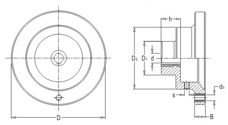 JS.105005 滿輻表盤手輪 顏色:黑色 材質(zhì):酚醛樹(shù)脂(膠木)、鋁合金 用途:適用于木工、食品、包裝、印刷等機(jī)械的精密指示或讀數(shù)調(diào)節(jié) 特性:外形美觀、堅(jiān)固耐用、機(jī)械式結(jié)構(gòu)、