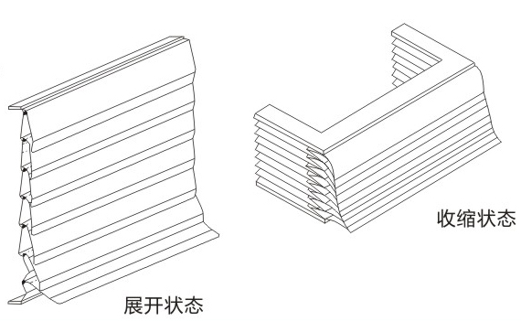 JS.107007 盔甲式防護罩 盔甲式不銹鋼機床防護罩的每個折層能經受強烈的振動而不變形,同時應用在風箱上,以900℃高溫而仍保持原有的狀態,他們之間彼此支持,起著阻礙小碎片滲透的作用。