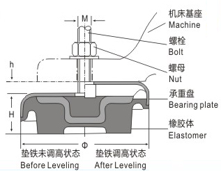 JS.108001 S78-10減震墊鐵 顏色:黃色 材質:鋼、橡膠 用途:適用于各類機械設備的水平調節和減弱機器自身的震動