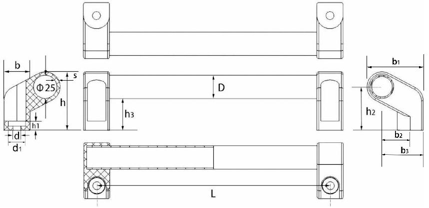 材質:管身(鋁合金)、拉手支座(增強尼龍含30%玻璃纖維)